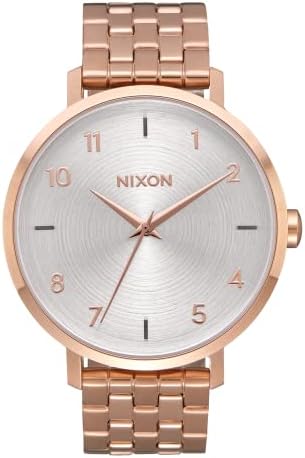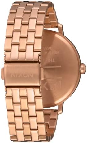 Nixon Arrow watch. Women's premium watch. Miyota Japanese quartz 3 hand movement. 38mm custom solid stainless steel case with 50 meter/5ATM rating. Hardened mineral crystal face and screw down caseback. 17.5 mm custom solid stainless steel 5-link bracelet with stainless steel locking clasp. Vendor style #: A1090. ARROW, ALL BLACK. Inspired by Scandinavian influences, Nixon’s 38mm All Black Arrow women’s watch merges fashion and function with sharp but simple details, giving it a casual twist on classic heirloom style. VERSATILE. With a menswear-inspired stainless steel band, custom-built buckle attachment, and cross-spectrum color options, this statement piece blurs the lines between men’s and women’s accessories. MODERN CLASSIC. Understated with a “less is more” approach, the Arrow is slightly oversized with 3-hand movement and subtle logo and number offerings. Share this wrist watch to the lady who dresses up and down. FUELED BY ADVENTURES.