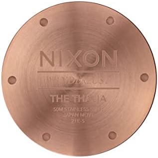 The Thalia is a sleek beauty that, with its minimalist design, shows an elegant, soft side of the watch construction, while the dial is still large and distinctive Details such as the date display, the crown with wing engraving and the clasp eyelet made of stainless steel make it stand out without being obtrusive The slim profile and minimalist design are complemented by the rounded edges of the tabs that provide a soft aesthetic. With a slightly larger 38mm case, this dial features straight numbers and a date window for optimal readability Individual, solid stainless steel housing and base, pressure tested with a water resistance of 5 ATM/50 m. The custom-made stainless steel buckle and clasp give the strap extra strength, as well as the stitched edge Sophisticated design elements ensure durability and aesthetics. The slim silhouette is characterised by gentle curves on the lug that point towards the surrounding seams along the bracelet until you see the custom-made, solid stainless steel loop and the buckle with Nixon embossing