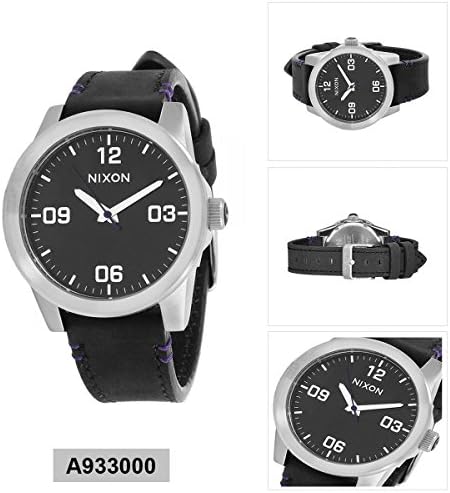 Brand Name NIXON Model number A933-000 Part Number A933-000 Item Shape Round Dial window material type Mineral Case diameter 30 millimetres Case Thickness 10 millimetres Band Material Leather Band width 18 millimetres Band Color Black Dial color Black Item weight 64 g Display Type analogue