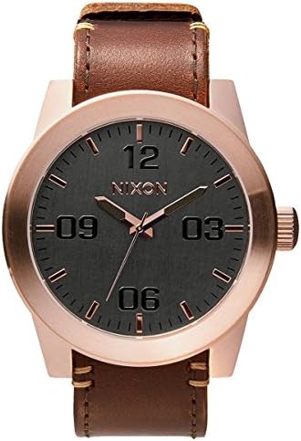 Brand Name NIXON Model number A2432001 Part Number A2432001 Item Shape Round Clasp Buckle Case diameter 48.00 Case Thickness 12 millimetres Band Material Leather Band Color Brown Dial color Grey Special features Water Resistant Movement Quartz Display Type analogue