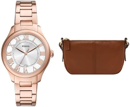 Specifications of Fossil Women's Raquel Rose Gold-Tone Stainless Steel Watch and Jolie Bag Brown, Set