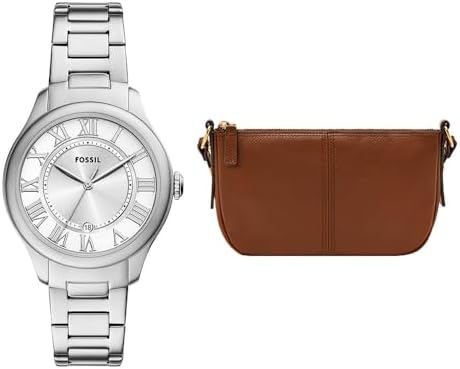 Specifications of Fossil Women's Gilmore Silver-Tone Stainless Steel Watch and Jolie Bag Brown, Set