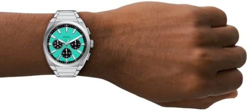 Ready for summer adventures? With all the timeless elements of a classic chronograph watch, Everett balances sporty and refined. Its vivid turquoise sunray dial is housed in a 44mm round stainless steel case. It features a robust integrated solid stainless steel bracelet, and the classic chronograph movement keeps you on schedule. Wear it as a statement piece or dress it up - wherever your day takes you.
