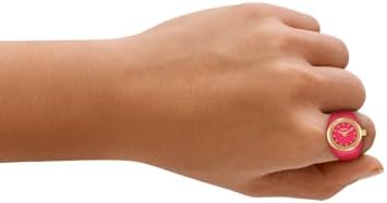 It's reinvented the classic watch ring with a modern twist. The two-hand stainless steel timepiece balances a petite rose gold case with vibrant pink glossy enamel. Feminine yet bold, it features a 5 ATM water resistance rating—this stunner is ready for your next outing. Slip it on and go.