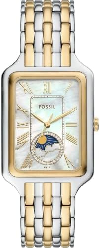 The Raquel watch is a true icon reborn. Its slim rectangular case and two-tone stainless steel bracelet exude timeless sophistication. A luminous white mother-of-pearl dial keeps things elegant, with a classic Sun Moon multifunction movement offers refined functionality. Vintage-inspired yet refreshingly modern, it's a classic you'll keep in heavy rotation.
