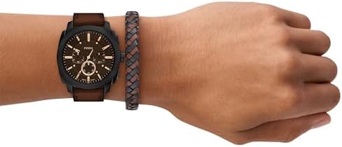 Specifications of Fossil Men's Machine Chronograph Stainless Steel Watch, Brown Leather/Black Gift Set, 44mm, Modern