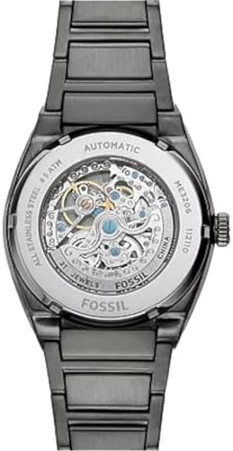 Fossil men's automatic watch from the everett collection. Watch with 42 mm case made of stainless steel with mixed smoky finish. The case is round in shape with a thickness of 10 mm. The glass is transparent and the dial is gray. The distance between the lugs is 18 mm. Water resistance is 5 atm. The strap is stainless steel with a mixed smoky finish. Strap with deployment closure. Movement: Automatic The reference is ME3206