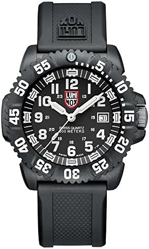 Featuring llt Luminox light technology - provides constant night visibility for up to 25 years, without pushing a button or recharging. Swiss technology featuring tiny gas lights on the hands, hour markers and on the bezel. 44 mm ultra-light carbon compound case, 20 atm water resistance tested, protected double-gasket security crown, tempered mineral glass Date indication, unidirectional rotating diver bezel, 24-hours military time indication Black pu rubber type strap Swiss made quartz movement.