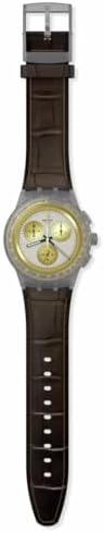This dark khaki-brown chronograph features a gray dial, black and golden-colored hands that glow in the dark and golden-colored counters. This timepiece sports a gray bezel with golden-colored print against a matte gray case. The brown leather strap features a semi-transparent matte gray buckle.