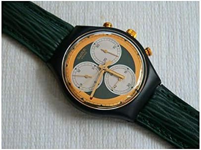 Brand Name Swatch Model number SCB107 Part Number SCB107 Model Year 1991 Item Shape Round Dial window material type Plastic Clasp Tang Buckle Case material Plastic Case diameter 37.4 millimetres Case Thickness 10.70 Band Material Leather Band Color Green Special features Chronograph, date Item weight 27 g Movement Quartz Water resistant depth 3.00 bar Display Type Analogue