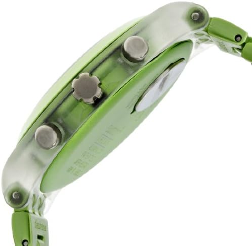 Chronograph Three sub-dials - 60 seconds, 60 minutes and 1/10 second Date display from 8.00 to 9.00 o'clock position Fixed green aluminium bezel Minute markers around the outer edge; luminous hands