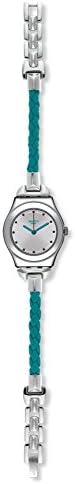 Brand Name Swatch Model number YSS282G Part Number YSS282G Model Year 2013 Item Shape Round Dial window material type Glass Clasp Tang Buckle Case diameter 24 millimetres Case Thickness 8 millimetres Band Material Leather Band Color Blue Dial color White Movement Quartz Display Type Analogue