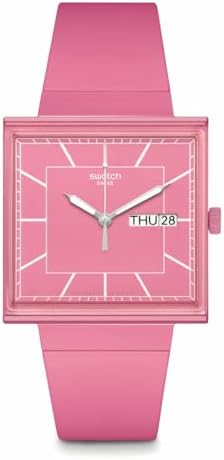 WHAT IF…ROSE? The square, pink BIOCERAMIC case has a continuous bio-based watch glass, through which the white printed indexes of the watch can be seen on the side. The square dial has silver fluorescent hands and a date display at 3 o'clock. The dial is complemented by the integrated bio-based strap with bioceramic clasp. The printed battery cover on the back shows a front view of the watch. Dimensions icon dimensions 41.80 mm case height icon case height 10.50 mm horn to horn distance icon horn distance icon horn distance 33.25 mm movement icon movement quartz waterproof icon waterproof 2 bar bracelet material icon bracelet material bio-based materials closure material icon closure material bioceramic bracelet buckle icon bracelet buckle clasp case material icon Housing material on housing material oceramic collection icon collection BIOCERAMIC WHAT IF? Collection type of packaging icon type of packaging slip box colour icon colour pink strap colour icon strap colour pink colour dial icon colour dial pink case colour icon case colour pink case shape icon case shape square product category icon product category originals