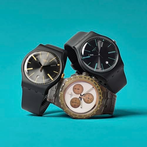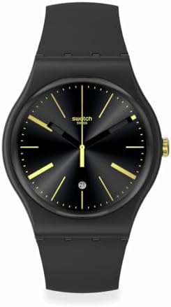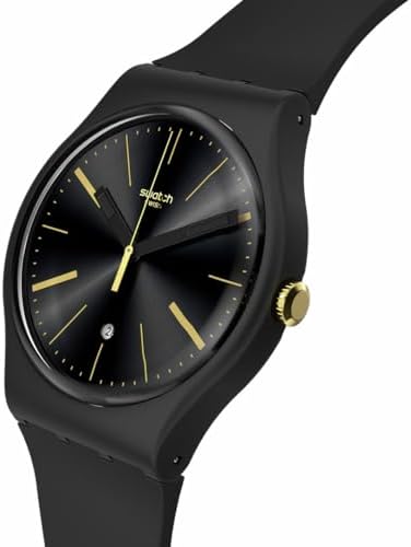 This watch features a sun-brushed black dial with golden-colored indexes, black hour and minute hands that glow in the dark and biosourced case and glass. The matte black, biosourced strap with matching loop and buckle complete this watch’s distinctive look.
