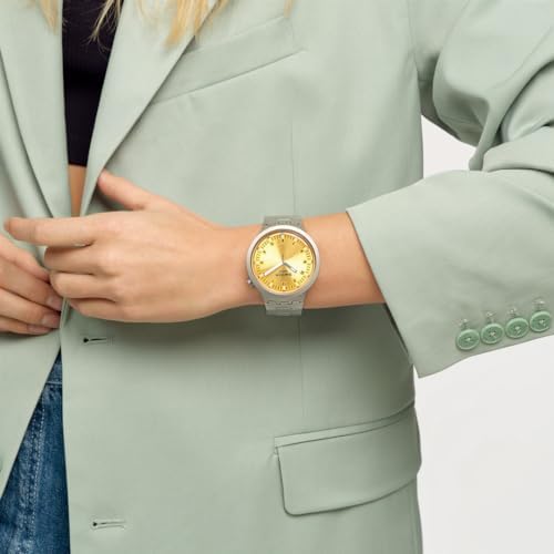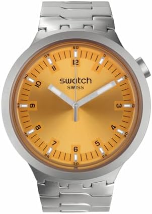 Brand Name Swatch Model number SB07S103G Part Number SB07S103G Item Shape Round Dial window material type Mineral Clasp Spring push buckle Case material Stainless Steel Case diameter 47 millimetres Case Thickness 14 millimetres Band Material Stainless Steel Band width 4.7 centimetres Band Color Silver Dial color Yellow Calendar No Calendar Movement Quartz Display Type Analog