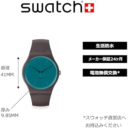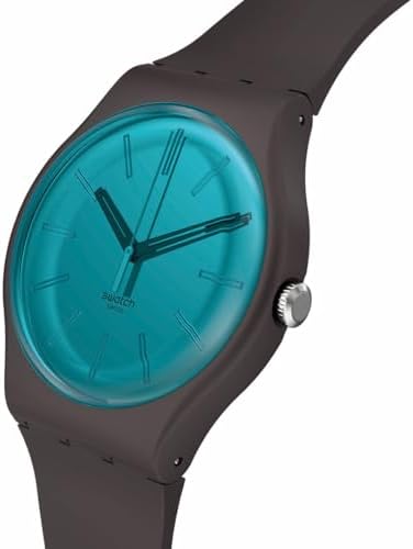 Brand Name Swatch Model number SO29C100 Part Number SO29C100 Item Shape Round Dial window material type Crystal Clasp Buckle Case material Plastic Case diameter 41 millimetres Case Thickness 9.85 millimetres Band Material Silicone Band width 5.5 centimetres Band Color Brown Calendar Date-Month Special features Water Resistance Movement Swiss Quartz Display Type Analog-Digital