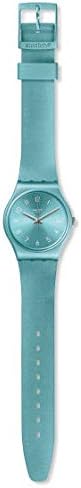 This beautiful women's watch so blue from Swatch has a case diameter of 34 mm. Its case is made of blue plastic and the strap is made of blue silicone. The dial is decorated with sunburst and white Arabic numerals. The bracelet with a slight glitter effect can be easily attached to the arm with the help of a pin buckle. The water resistance is 3 bar.