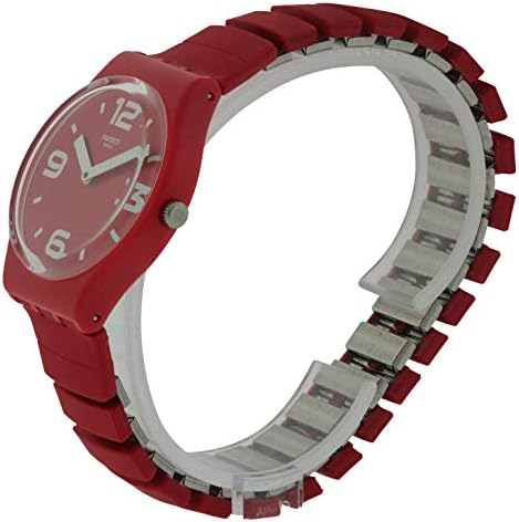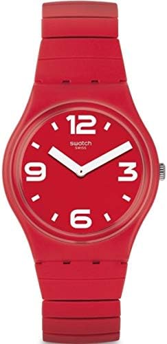 The Chili by Swatch is a timeless piece for those who value the little luxuries in life. This watch is handcrafted with a sleek stainless-steel band and plastic case. These durable materials guarantee longevity of the product and a proud owner in the years to come. The red band, red dial and white hands contribute to the overall appearance of the watch by adding a sophisticated aspect. This piece also features a sturdy mineral crystal to protect the dial and a swiss quartz movement to ensure you remain punctual in your daily life. In addition, this product is water-resistant to 30 meters / 100 feet / 3 atm, which is ideal for those days where an accident may occur. The rich details, imperishable components and luxurious quality of the Swatch Chili watch make it a perfect addition to any collection.