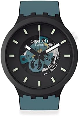 Brand Name Swatch Model number SB03B107 Part Number SB03B107 Item Shape Round Dial window material type Crystal Clasp Buckle Case material Plastic Case diameter 47 millimetres Case Thickness 11.75 millimetres Band Material Silicone Band width 4.7 centimetres Band Color Black Dial color Black Special features BIOCERAMIC material and unique dial design Movement Quartz Display Type Analog
