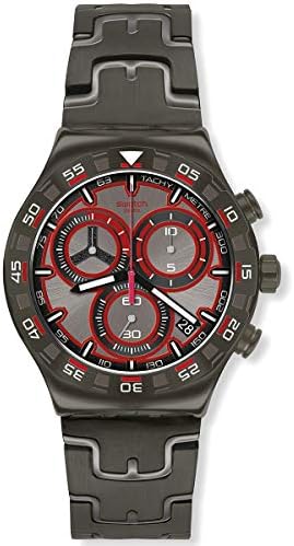 Brand Name Swatch Model number YVM406G Part Number YVM406G Item Shape Round Dial window material type Crystal Clasp Buckle Case material Metal Case diameter 43 millimetres Case Thickness 12.67 millimetres Band Material Plastic Band width 21 millimetres Dial color Silver Special features Chronograph Movement Quartz Display Type analogue