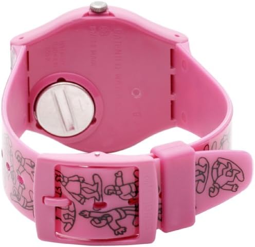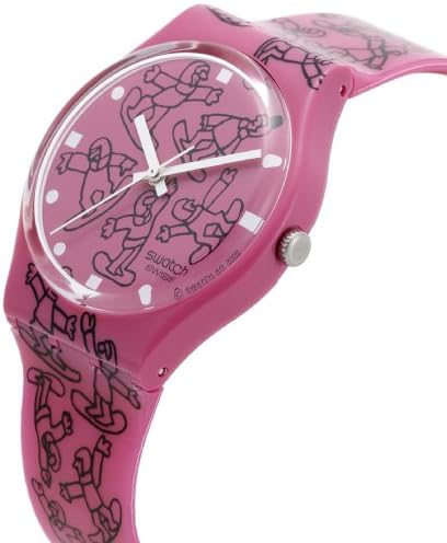 Brand Name Swatch Model number GZ200 Part Number GZ200 Model Year 2009 Item Shape Round Dial window material type Plastic Clasp Buckle Case material Plastic Case diameter 34 millimetres Case Thickness 9.5 centimetres Band Material Plastic Band width 10 millimetres Band Color Multicolour Dial color Pink Movement Quartz Display Type analogue