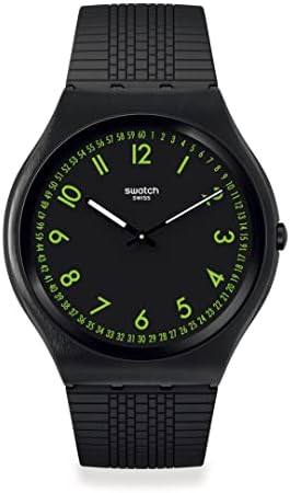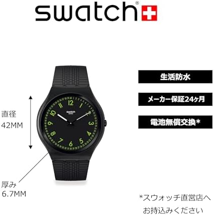 Brand Name Swatch Model number SS07B108 Part Number SS07B108 Item Shape Round Dial window material type Glass Clasp Buckle Case material Stainless Steel Case diameter 42 millimetres Case Thickness 6.7 millimetres Band Material Rubber Band width 17 millimetres Band Color Black Dial color Black Special features Crystal Display Type Analog