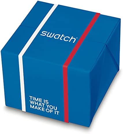 Blue (Transparent) dial enhanced by luminous hands. White bio-ceramic case with a blue (bio-sourced) silicone band. Quartz movement. 30 meters / 100 feet water resistance. Fixed bezel. Plexigl crystal. Solid caseback. Tang clasp. Pull / Push crown. Case size 47 mm x 11.75 mm. Band 23 mm x long. Swatch SB03Z100 Jumpsuit Watch.