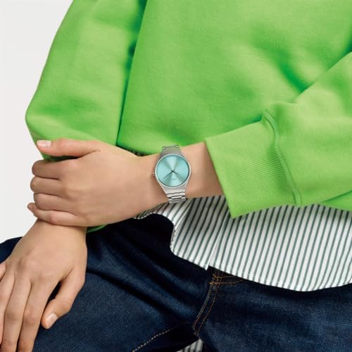 Brand Name Swatch Model number SYXS155G Part Number SYXS155G Item Shape Round Case diameter 38.3 millimetres Case Thickness 5.8 millimetres Band Material Stainless Steel Band width 16 millimetres Band Color Silver Calendar No Calendar Special features Water Resistant Movement Quartz Display Type Analog