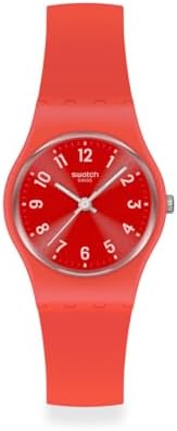 Specifications of Swatch Red Plastic Strap Wrist Watch with White Numbers Red Dial 34mm, red