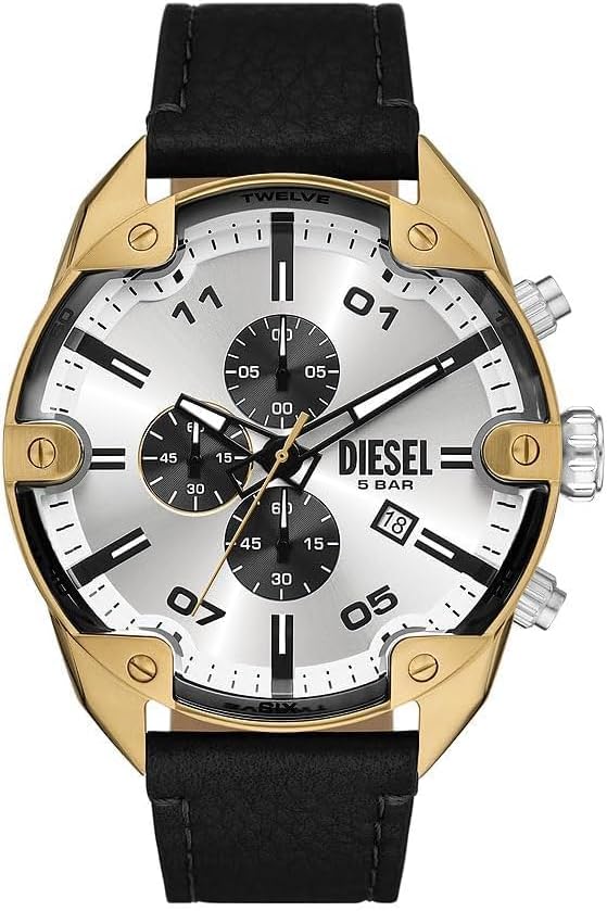 Specifications of Diesel Men's Spiked Black Leather Watch and Font Necklace Stainless Steel, Set