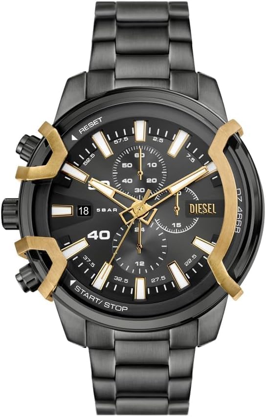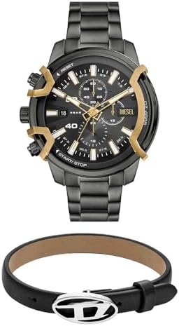 Specifications of Diesel Men's Griffed Grey Stainless Steel Watch and Stackables Black Leather Bracelet, Set
