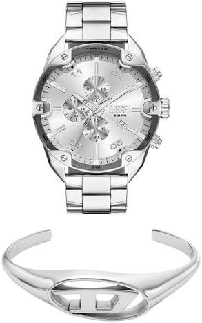 Specifications of DIESEL Men's D Logo Silver-Tone Stainless Steel Watch and Bracelet, Set