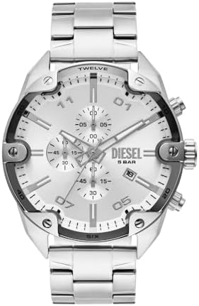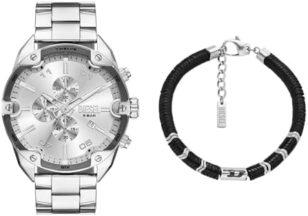 Specifications of DIESEL Men's Spiked Silver-Tone Stainless Steel Watch and D Logo Bracelet Semi-Precious, Set