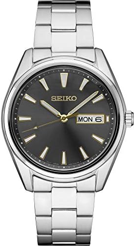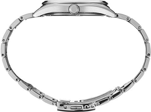 From the Essentials Collection. Offering classic dress/sport designs, in three sizes to suit anyone’s personal style, the Essentials Collection provides the ideal solution for everyday wear. Crafted of stainless steel, this perfectly tailored design features a contemporary minimalist dark gray sunray dial with gold accents, day/date calendar, LumiBrite hands and markers, and a sapphire crystal for superior scratch resistance. 10 bar, 100M Water Resistant