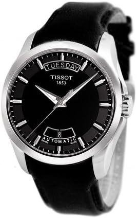 t0354071605100 clock Tissot Men case material steel Case Black only time clock with day and date, stainless steel case and black leather strap with Vista deployante clasp, Black dial, automatic Swiss movement, sapphire glass, case diameter 39 mm. W.R. 10 ATM. Completely Swiss Made
