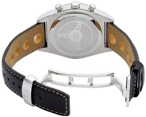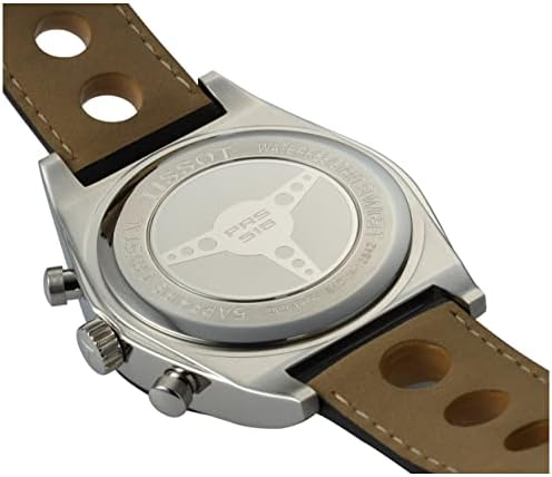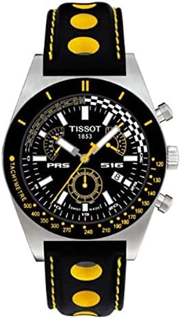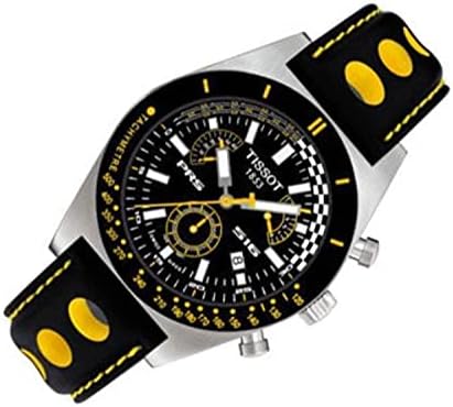 Tissot T91142851 Men's Chronograph – Swiss Made Stainless steel case, silver coating, polished/matte Genuine leather strap, black/yellow, folding clasp. Tachymeter bezel Quartz movement, battery operated. Date display. Chronograph function, stopwatch. 50 metres water resistant. Case width: approx. 40 mm . RRP: 295 EUR