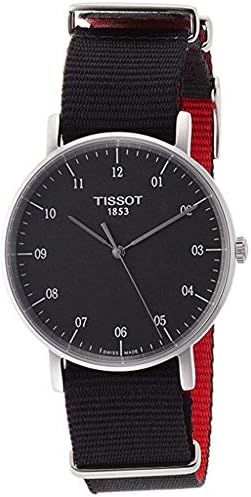 The Tissot Men's Watch T1094101707700 is a model of the Everytime series. The watch is made in Switzerland and is made of stainless steel, has a Swiss quartz movement and Arabic & indexed numerals. Scratches are avoided by the high quality sapphire crystal. The watch is water resistant to 30m / 3bar. Housing: stainless steel Bracelet: textile Movement: quartz movement Waterproof: 30m / 3bar Pointer: 3 (hours / minutes / seconds).