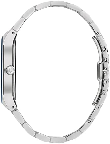 Bulova's Men's Modern Collection features the best in geometric silhouettes and cutting-edge design. 6 Hand, Day / Date, 24 Hour Time Silver-Tone Stainless Steel with Blue Dial 8 Diamond Accents and Metalized Mineral Edge-to-Edge Crystal 30M Water Resistant