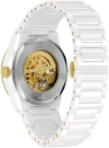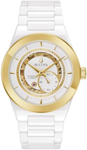 Bulova's Men's Modern Collection features the best in geometric silhouettes and cutting-edge design. Automatic, 2 Hand with Sub sweep Second hand, Full Skeleton White Ceramic Case and Bracelet Domed Mineral Crystal 30M Water Resistant