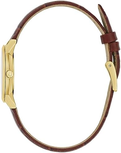 From the Bulova Ladies' Classic Collection, inspired by vintage design, the classic watches achieve a tailored, understated look that's always in style. 3 Hand, Slim Movement Gold-Tone Stainless Steel Case; Brown Croc Embossed Leather Strap 4 Diamonds Individually Set on Dial with Mineral Crystal 30M Water Resistant