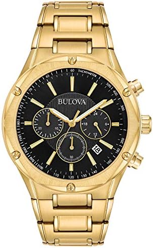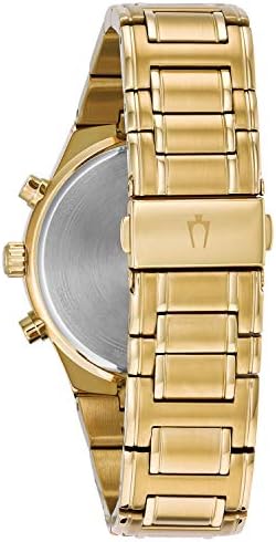 From the Bulova Men's Classic Collection, inspired by vintage design, the classic watches achieve a tailored, understated look that's always in style. 6 Hand, Chronograph, Calendar, 24 Hour Time Gold Tone Stainless Steel Mineral Crystal 30M Water Resistant
