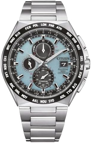 This high quality watch has an Eco-drive technology (Recharged by any light source; no need for ever a battery). This Chronograph watch has a calendar function: Date , Radio Controlled , Solar Powered , Stop Watch , 24-hour Display and Luminous Hands