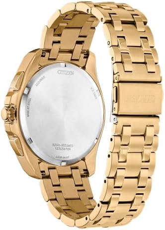 A combination of functional simplicity with a touch of timeless elegance, this Men’s Chronograph is powered by any light with Citizen Eco-Drive technology. Styled with a black dial featuring gold tone accents. This timepiece features a 1/5 chronograph that measures up to 60 minutes, 12/24 hour time, date display and sapphire crystal. The look is completed with a stainless-steel gold tone bracelet.