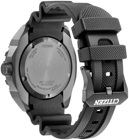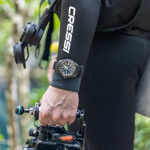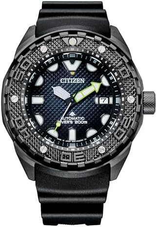 Submerge yourself in a new collection of Automatic Dive watches with a deeconnection to Citizen’s history of innovation and proprietary technology. The new Promaster Automatic Diver 200M watch features a Super Titanium case with Duratect DLC coating that is lightweight and durable. The bezel has angled tabs for an easy grip, and both the bezel and dial have pyramid stud design that surrounds an anti-reflective, dual-sphere sapphire crystal, and the dark blue dial complements the titanium case and black polyurethane strap for a strong aesthetic of sport style and performance. Powered by the movement of your wrist, this advanced automatic watch features a 42-hour power reserve and large applied luminous hands and markers to give you an easy read in the dark or underwater. ISO compliant with a screw-down crown and water resistant to 200 metres. the watch also comes with a dive extender strap. Presented in an exclusive collector’s dive tank style box.