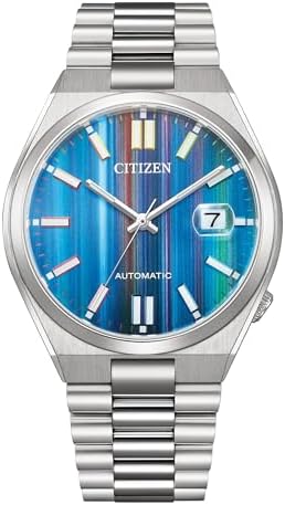 Citizen Mens Automatic Tsuyosa The Tsuyosa Automatic brings ultramodern sports styling to your wrist; the sophisticated design of the watch makes a strong impression with the stainless steel case and a seamlessly integrated, matching bracelet Features: a 40mm stainless steel case and bracelet, a Sapphire Crystal glass, luminous fill hands and a date window Powered by an automatic movement with a 42-hour power reserve 50 metres water resistant