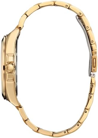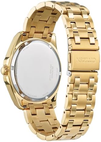 Styled in gold-tone stainless steel with a sleek blue dial, this timepiece effortlessly completes any look. This 3-hand timepiece features gold-tone luminous hands and markers, sapphire crystal and date display at the 3 o’clock position. Sustainably powered by any light with the Eco-Drive technology.
