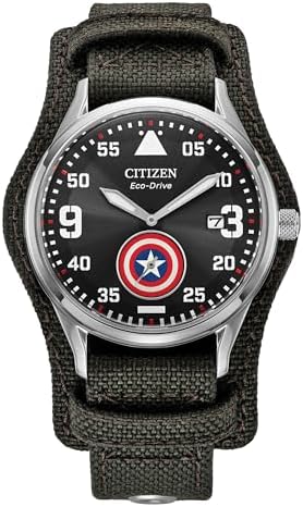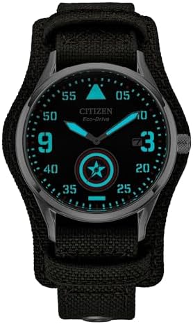 Since 1940, Captain America has served as a shining beacon of liberty and determination. The story of the first Avenger continues to captivate fans worldwide. And just as you’d choose the ultimate patriot to lead your team of Avengers, you’ll want this Captain America inspired watch on your wrist. The military-inspired black dial with luminous printing and hands features a symbol of his strength, his iconic Vibranium alloy shield, on the sub-dial. The 40mm stainless steel case and dark grey Cordura nylon cuff band are built to last, and the case back showcases the Captain America logo to remind you that freedom is always worth fighting for. Sustainably powered by any light with Eco-Drive technology, this watch never needs a battery.