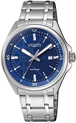 Vagary Women's Watch from the Aqua39 Collection. Model with steel case with screw base, 34 mm diameter and blue dial with applied indexes. This watch has a steel bracelet with a button closure. Clock with 10 ATM water resistance, Citizen quartz movement. G011 gauge, date and mineral glass. The reference is Iu1-310-71