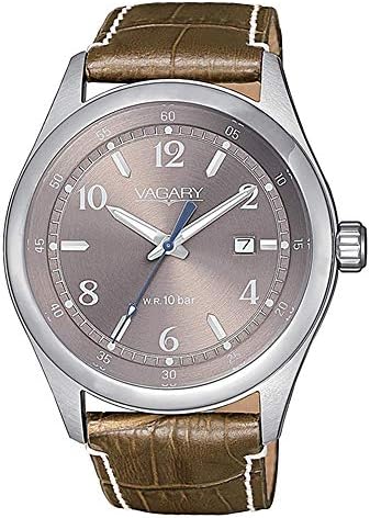Vagary Men's Time Only Watch from the Rockwell Collection. Watch with stainless steel case with screw-locked bottom with a diameter of 41 mm. Model With Grey Dial With Applied Markers And Arabic Numbers, Mineral Glass And Soft Tan Leather Strap. This watch has a Citizen quartz movement, a water resistance of 10 Atm and date display. The reference is Ib8-615-60