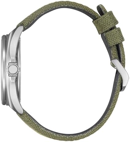 This Citizen Of collection AW1571-09E Militaryoriented men's watch has a barrel shaped steel case. The strap is khaki nylon military style. Black dial, luminous indexes and hands. Mineral crystal, Eco Drive J810 movement with 8 months power reserve and analog display. Water resistance: 10 ATM. Diameter: 40.8 mm. Functions: Three hands and calendar. Weight: 84 gr. Belongs to the collection: Of collection. Enjoy your Citizen watch.